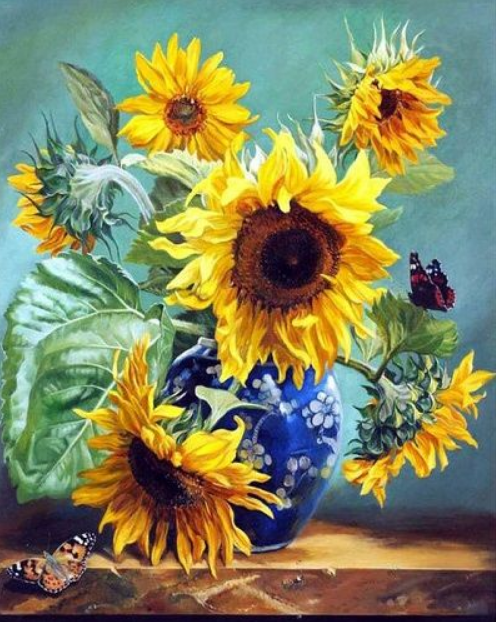 Бабочки и подсолнух